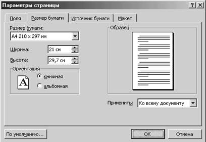 Рис. 5.7. Вкладка Размер бумаги диалогового окна Параметры страницы.
