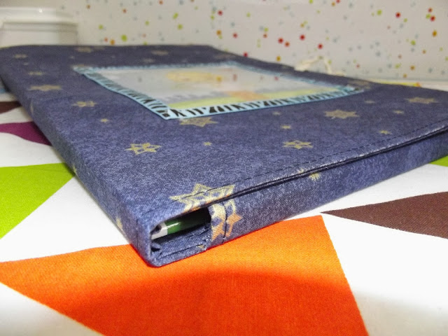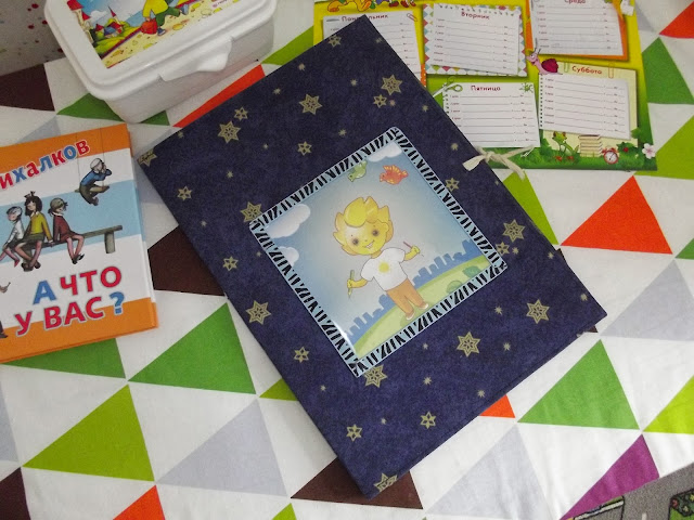 На обложку пришила картинку ,которую сверху прикрыла прозрачным пластиковым листом,чтобы дольше служила.А затем все швы прикрыла репсовой лентой.На месте стыка лент должна быть пуговица.