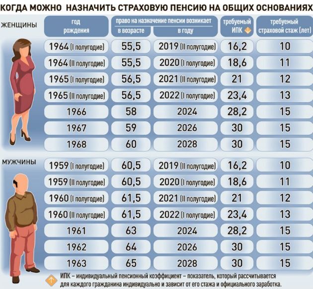 | 1959, 1 января — 30 июня | 2019, 1 июля — 31 декабря | 60,5 | +0,5 |