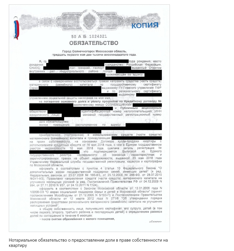 - В том случае, если жилье не оформлено по долевой собственности вместе со всеми членами семьи, к документам нужно приложить нотариальное обязательство, в котором прописана обязательное выделение долей детям и супругу не позднее, чем через 6 месяцев после погашения ипотеки.