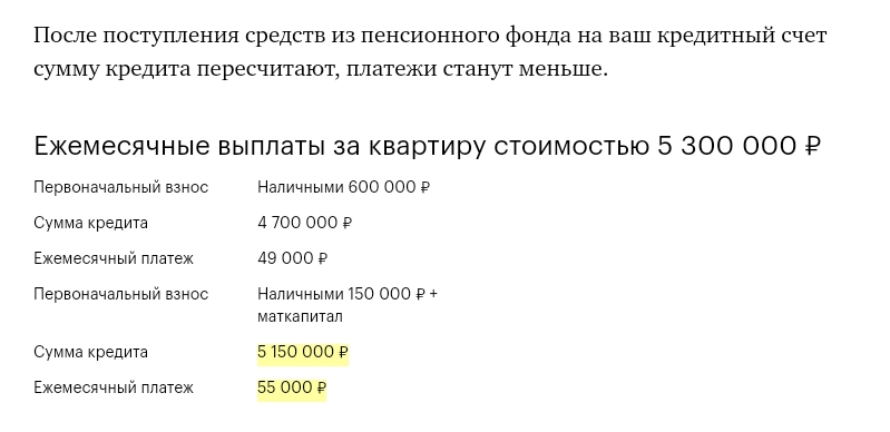 В кредитном договоре в момент его подписания деньги МСК не будут учитываться, только собственные взносы клиента. Дело в том, что Пенсионный фонд делает перевод на банковский счет в течение 1-2 месяцев. Так что перерасчет будет позже.