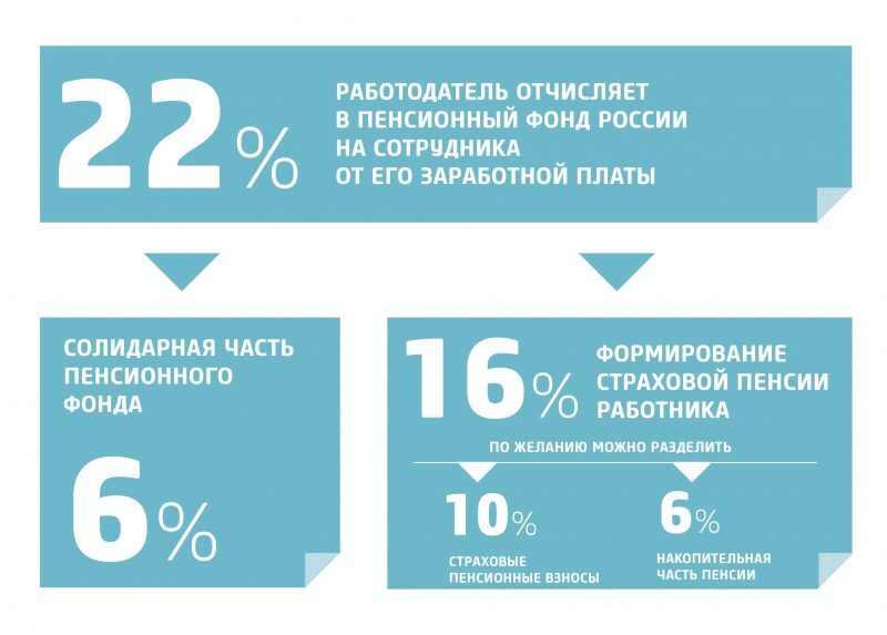 Однако, хоть стоимость пенсионного коэффициента для работающего пенсионера и не увеличится, его пенсия вырастет за счет увеличения самого числа пенсионных баллов. Так, по общему правилу, все страховые взносы на обязательное пенсионное страхование (22% от зарплаты, в ряде случаев меньше) распределяются на 2 части: 16% идет на индивидуальную часть, а 6% – на солидарную часть.