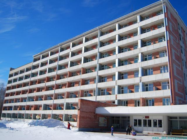 Здание: 8-ми этажный корпус, соединен с лечебным корпусом, столовой и бассейном c морской водой.