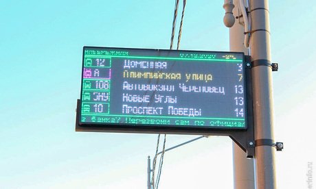 На информационных табло будут отображаться номера автобусов и трамваев, а также время прибытия транспорта.