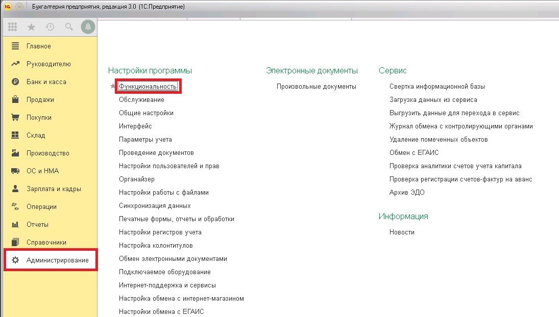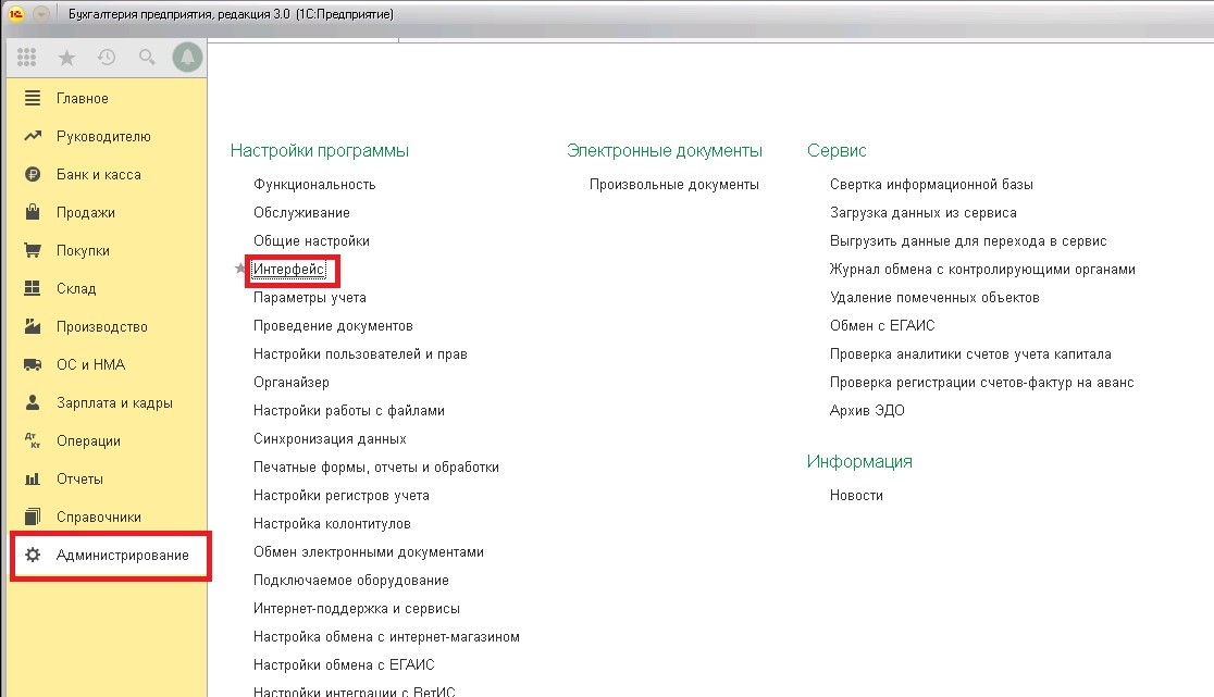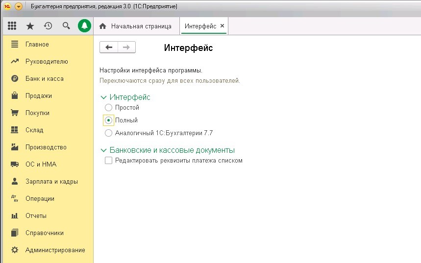 Такие способы могут применять в своей работе пользователи, которые работают с полным интерфейсом программы (меню «Администрирование» - «Интерфейс»).