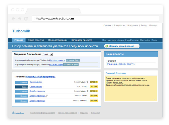 « Мегаплан » — это, по сути, российский аналог Basecamp, выпущенный в 2008 году. Изначально сервис специализировался на управлении проектами, но потом добавились инструменты для автоматизации продаж, взаимодействия с клиентами и финансового планирования. Сейчас работу можно начать с 30-дневного пробного периода, а потом перейти на один из трёх платных вариантов. Первый — просто управление задачами и людьми, второй позволяет контролировать ход сделок и вести учёт клиентов. В третьем варианте предлагается комплексное управление компанией, которое включает в себя и задачи, и сделки, и финансовый учёт. Во всех вариантах пользователь может арендовать аккаунт или (после единовременной оплаты) установить « Мегаплан » на свой сервер. Оплатить услуги можно электронными деньгами.