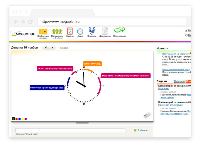 Работать с Мегапланом приятно – юзабилити на высшем уровне. Среди преимуществ отмечу: