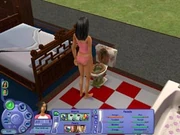 Все действия, связанные с уходом за крохой, разворачиваются около кроватки. Симы, ухаживая за малышами, выполняют следующие действия: говорят, ласкают и хвастаются, корчат рожицы, качают и воркуют, меняют пеленки, кормят и баюкают.