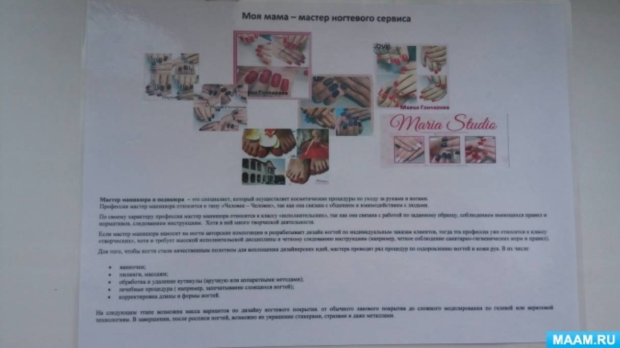 Защита проекта по теме «Мамина профессия» по следующим аспектам: