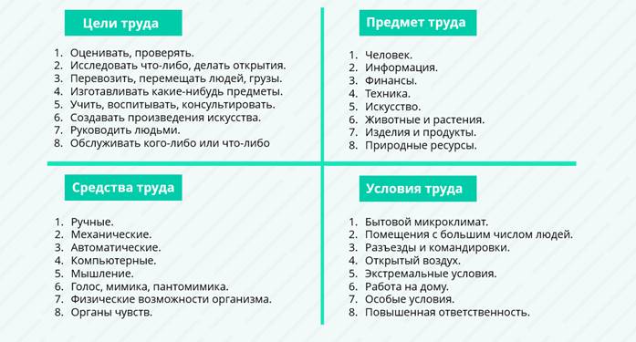 Далее из каждой выбранной вами группы запишите самые привлекательные для вас цели, предметы, средства и условия труда.