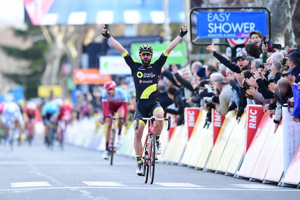 Немец Нилс Политт из Team Katusha Alpecin и француз Жером Кузан из Direct Energie ехали в отрыве практически весь пятый этап «Париж – Ниццы» в 2018-м году.