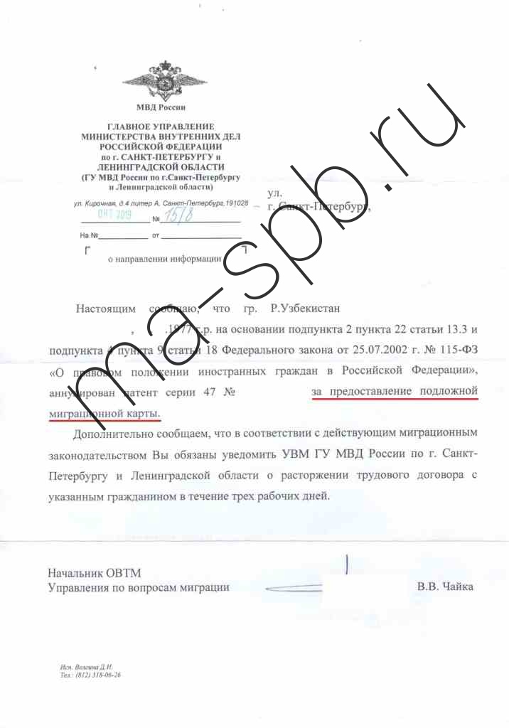Как проверить не аннулирован ли патент на работу иностранному гражданину
