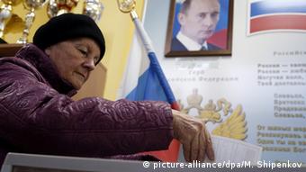 Пенсионерка в России голосует на выборах в Госдуму 2016 года