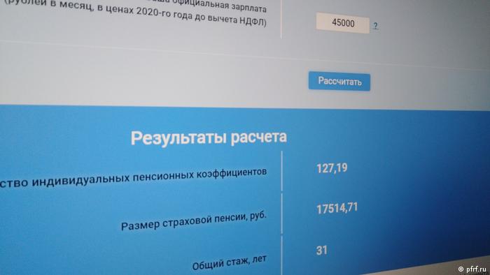 Калькулятор пенсий с сайта ПФР - при зарплате в 45 000 рублей и стаже в 30 лет пенсия будет 17 500