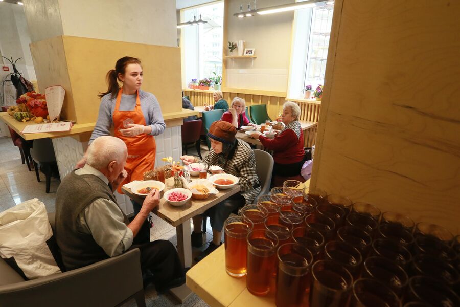В Москве пожилые люди могут пообедать бесплатно с 12 до 16 часов, а в вечерние и утренние часы кафе принимает обычных клиентов, которые оплачивают счет.