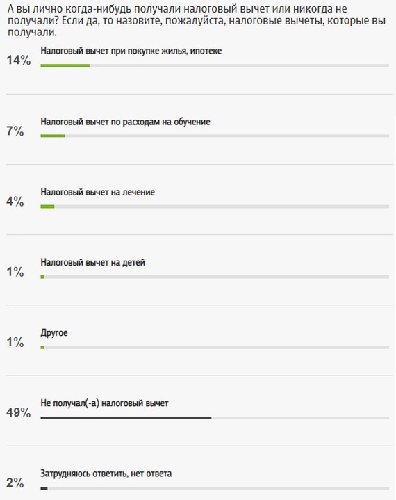 Также у участников опроса спросили про осведомленность о праве на получение налогового вычета, 46% знают о данной возможности, 29% что-то слышали и примерно столько же (25%) слышат об этом впервые.
