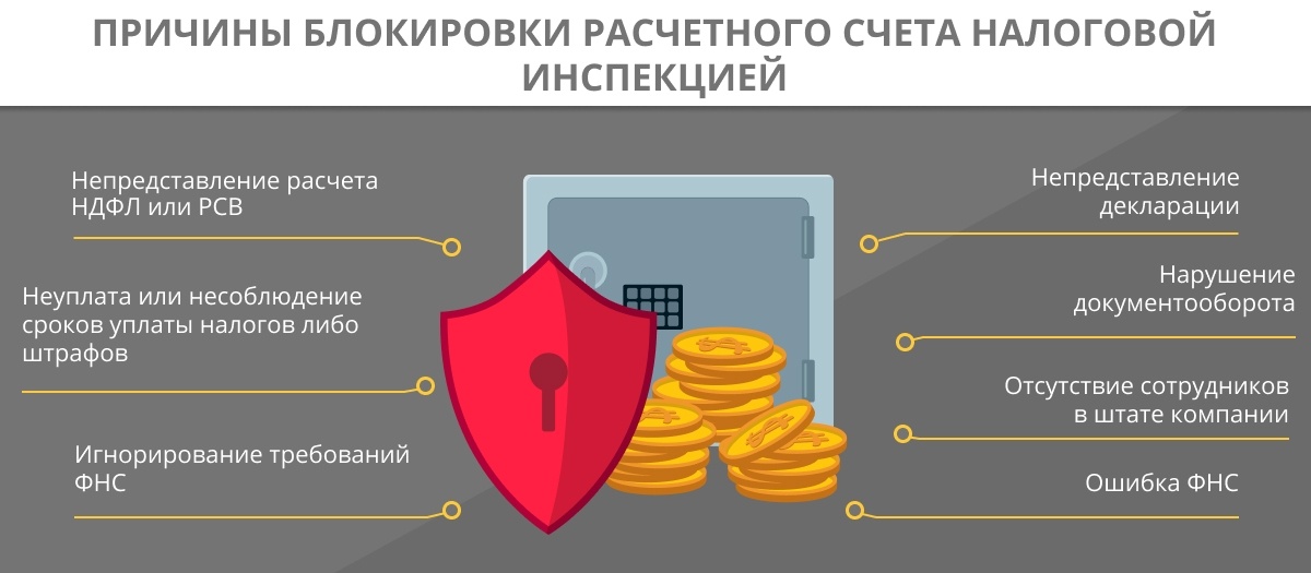И все-таки самыми распространенными причинами блокировки счета можно назвать игнорирование требования уплатить обязательные платежи, а также задержку с предъявлением документов в ФНС.