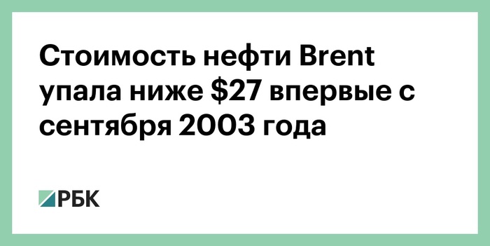 Цена на нефть Brent упала ниже $27 впервые с 2003 года
