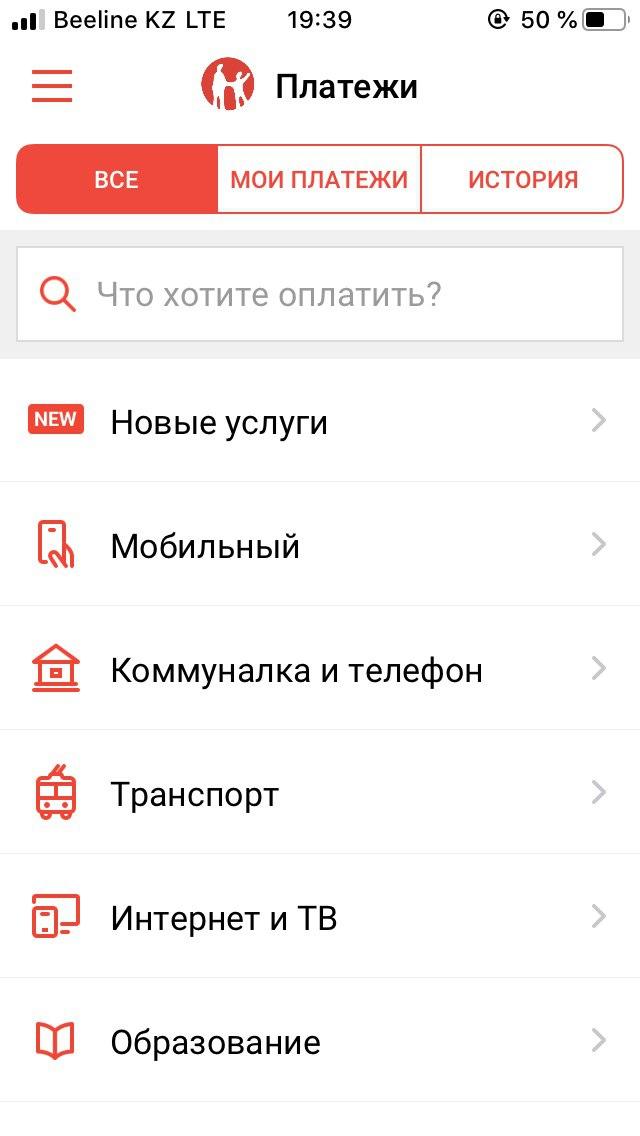 Открываем приложение Каспи, авторизуемся и заходим в платежи.