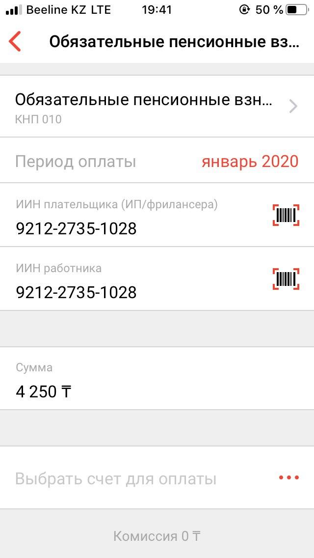 Далее выбираем период оплаты, например, январь 2020 года, вводим свой ИИН и нажимаем продолжить. На следующем шаге выбираем способ оплаты и оплачиваем.
