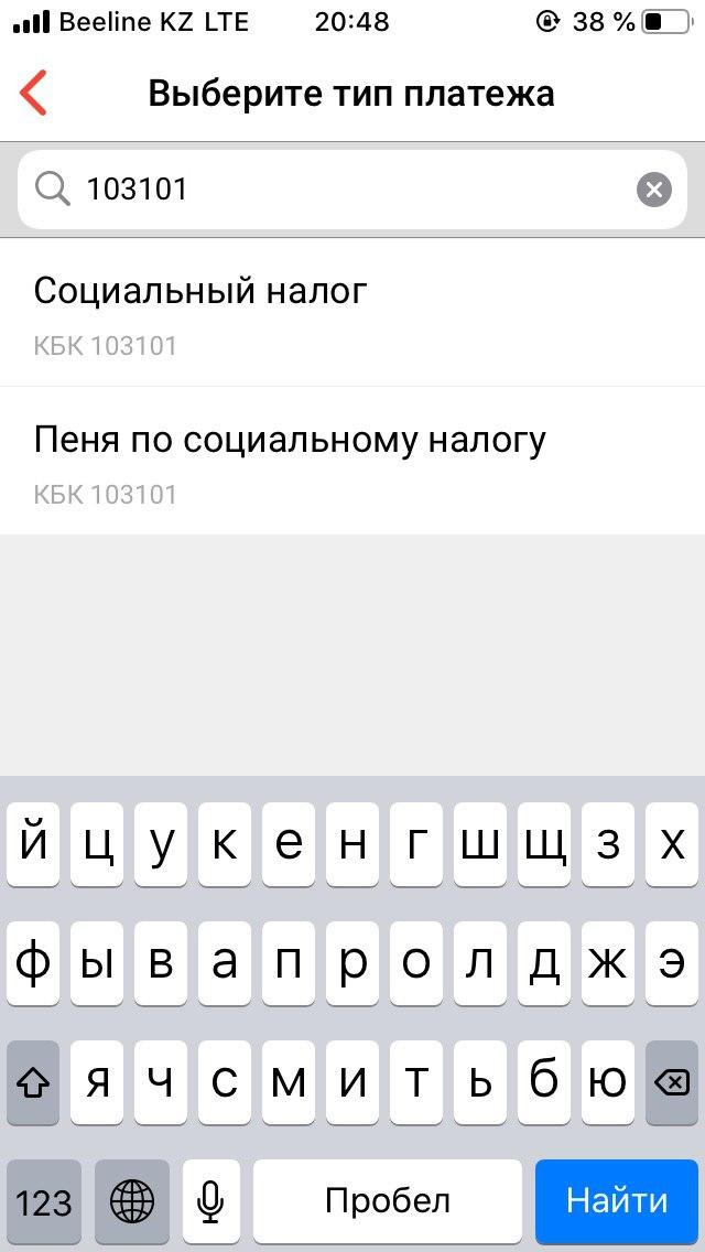 Допустим, выбираем вид платежа «Обязательные пенсионные взносы» или «Социальные отчисления» и переходим к платежу.