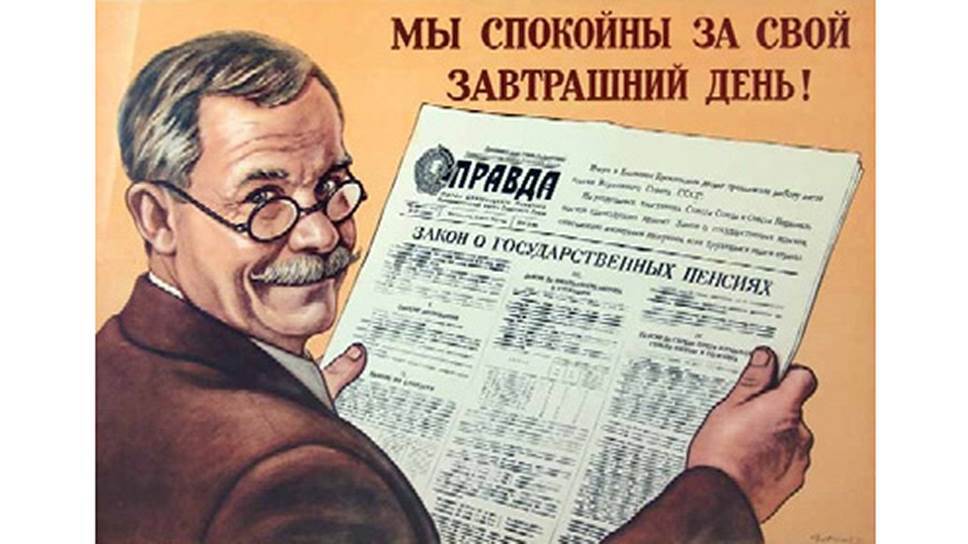 За всеобщее обеспечение колхозников пенсиями по старости особенно рьяно выступал Никита Хрущев. «Пришло время все дело пенсионного обеспечения колхозников поставить на более прочную основу, создать такие условия, при которых каждый честный сельский труженик в старости смог бы регулярно получать пенсию»,— говорил он «Правде» в 1964 году, когда принимался закон о пенсиях для колхозников.